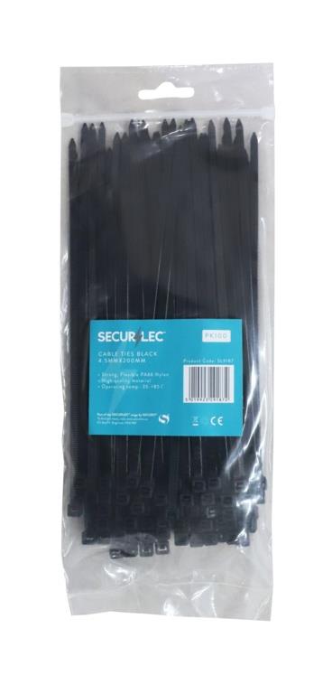 - Securlec Black Cable Ties 4.5mm x 200mm Pack 100 Securlec Black Cable Ties 4.5mm x 200mm Pack 100