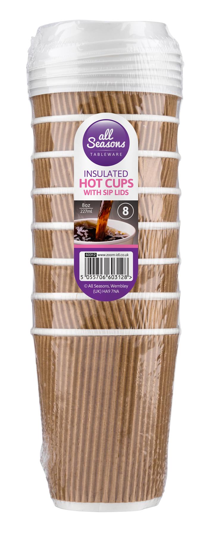 - All Season 8pk Insulated Hot Cups with Sip Lids -227ml/8oz All Season 8pk Insulated Hot Cups with Sip Lids -227ml/8oz