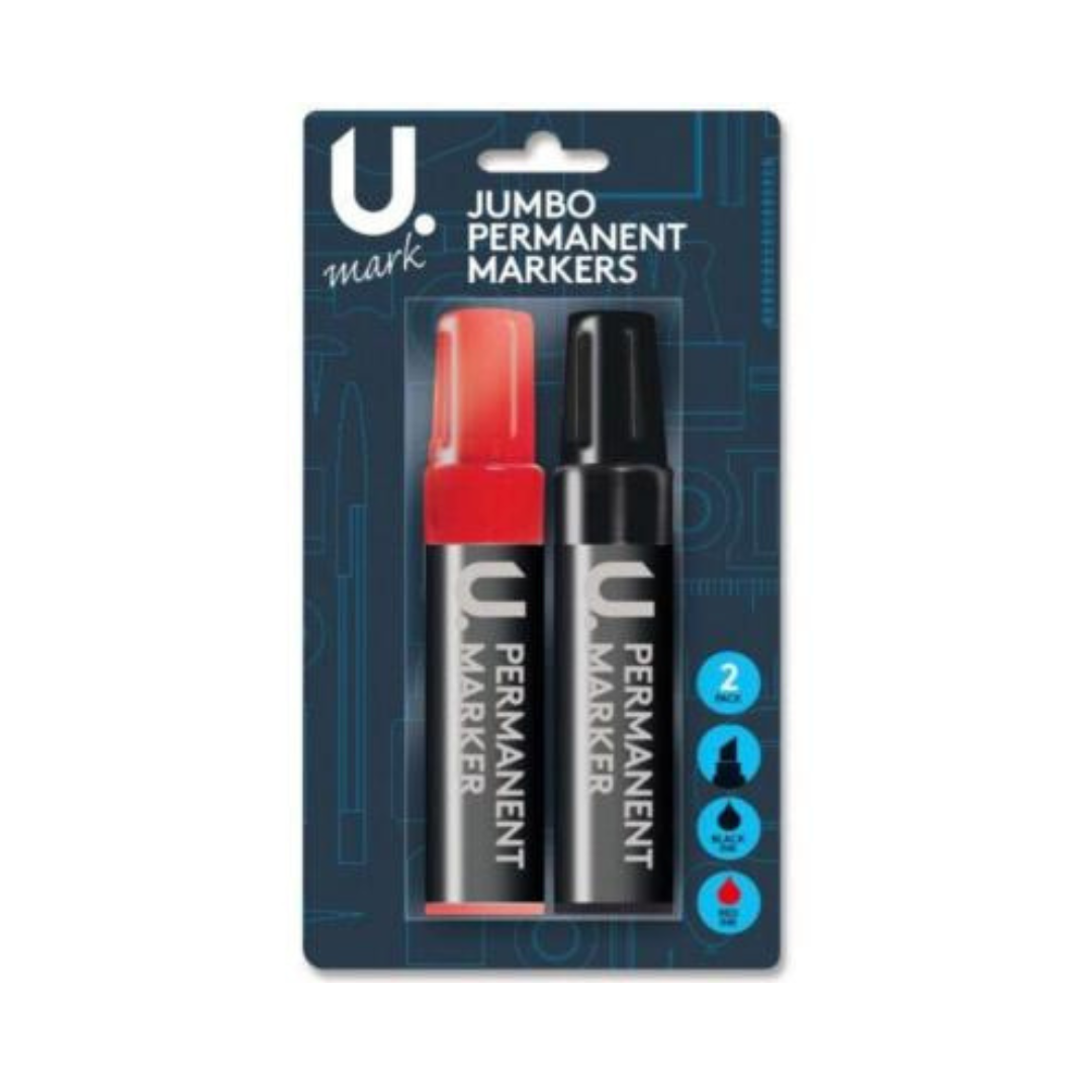 - U. Mark Jumbo Peranent Markers 2 Packs Black/Red U. Mark Jumbo Peranent Markers 2 Packs Black/Red