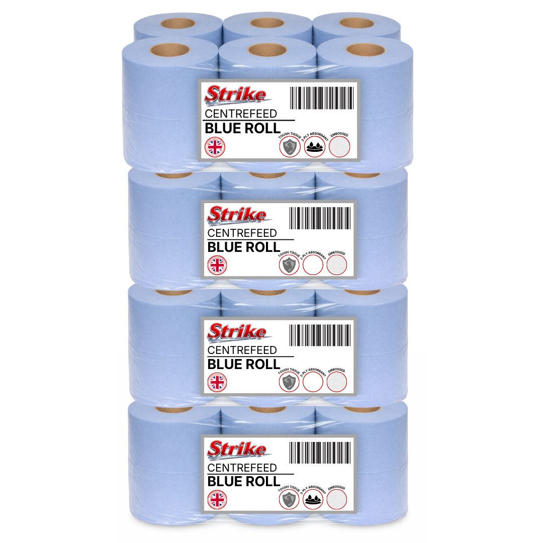 - 24 Rolls Blue Strike Embossed 2ply Wiper Paper Towel 45M (6*4) 24 Rolls Blue Strike Embossed 2ply Wiper Paper Towel 45M (6*4)