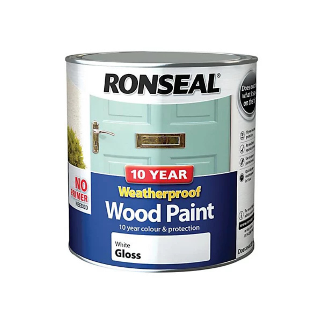 - Ronseal 10 Year Weatherproof Gloss Wood Paint 2.5L / White Ronseal 10 Year Weatherproof Gloss Wood Paint 2.5L / White