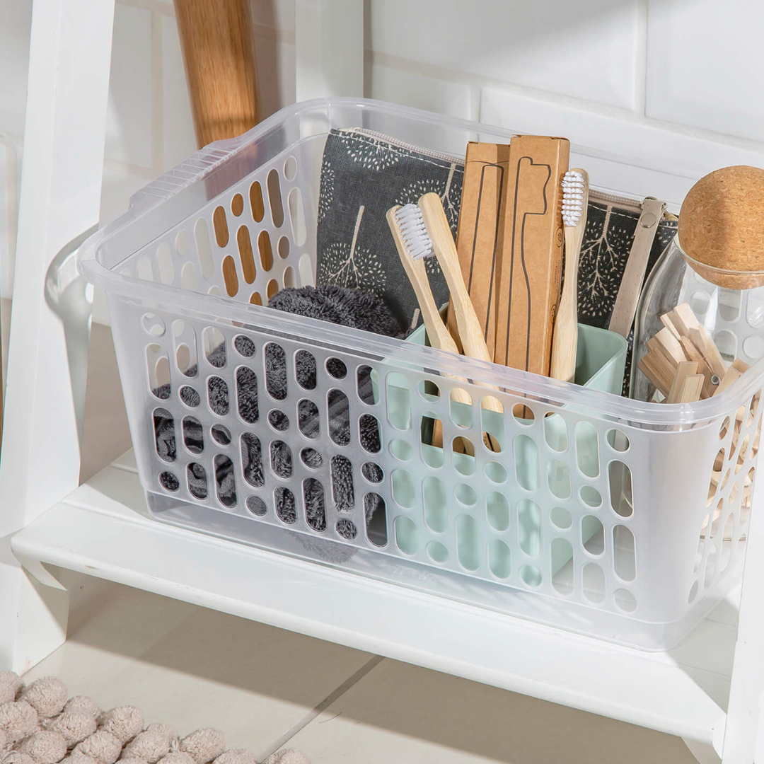 Keep your home neat and organized with the Wham Large Handy Basket in Clear, a practical and versatile storage solution for everyday household needs. Designed with durability and convenience in mind, this large plastic storage basket is perfect for organizing items in the kitchen, bathroom, bedroom, office, or pantry.